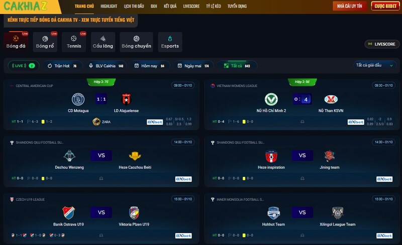 - Ngay trang chủ đã hiển thị đầy đủ danh sách trận sắp diễn ra.